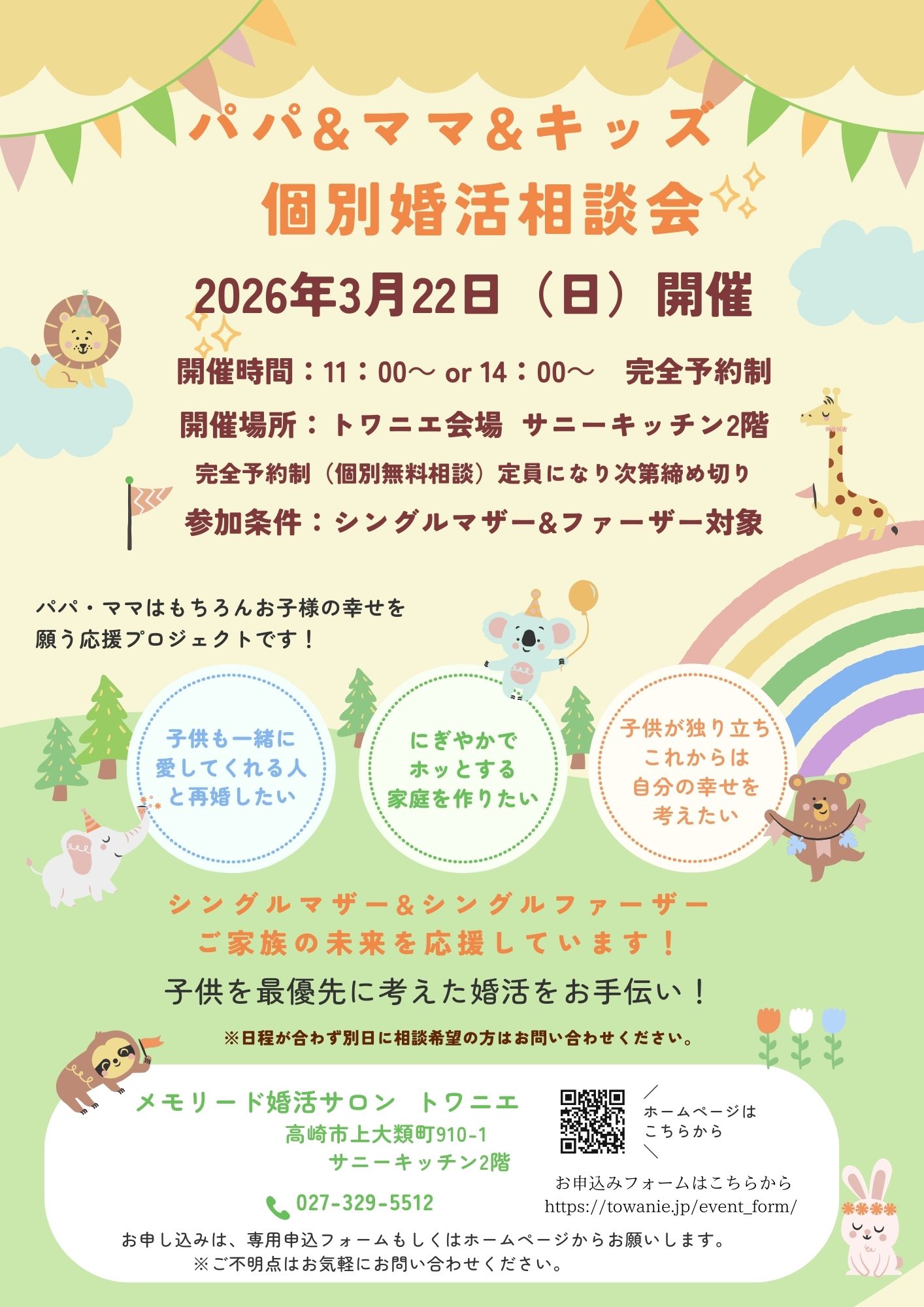 シングルマザー&シングルファーザーの婚活個別相談会